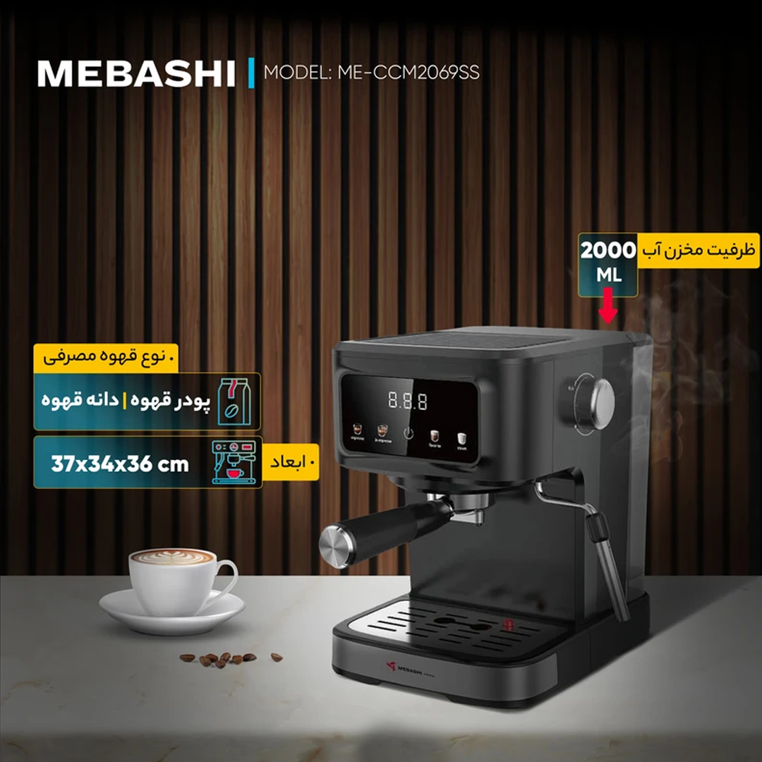 پنل صفحه نمایش لمسی/ظرفیت: 1.5 لیتر/رنگ: مشکی/دم کردن حرفه ای/پمپ های فشار قوی ULKA 20 بار برای قهوه غنی و معطر./دیگ آلیاژ آلومینیوم دایکاست برای دوام و کارایی./مخزن آب شفاف 1.5 لیتری قابل جدا شدن برای پر کردن آسان/سینی چکه قابل جدا شدن برای تمیز کردن بدون زحمت/عملکردهای چند منظوره/کف کردن با فشار بالا برای کف شیر خامه ای/پنل صفحه لمسی چند منظوره: بخار، آب داغ، کف ساز شیر، فنجان تک یا دوتایی/مجهز به محافظ در برابر گرمای بیش از حد و فشار بیش از حد/فیلتر دوگانه استیل ضد زنگ برای دم کردن دو فنجان به طور همزمان